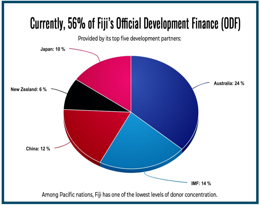 As the white paper notes, Fiji’s development partners lack a prominent American presence. In fact, the United States ranks 13th in development partnerships, contributing only 1 percent of Fiji’s development assistance.
